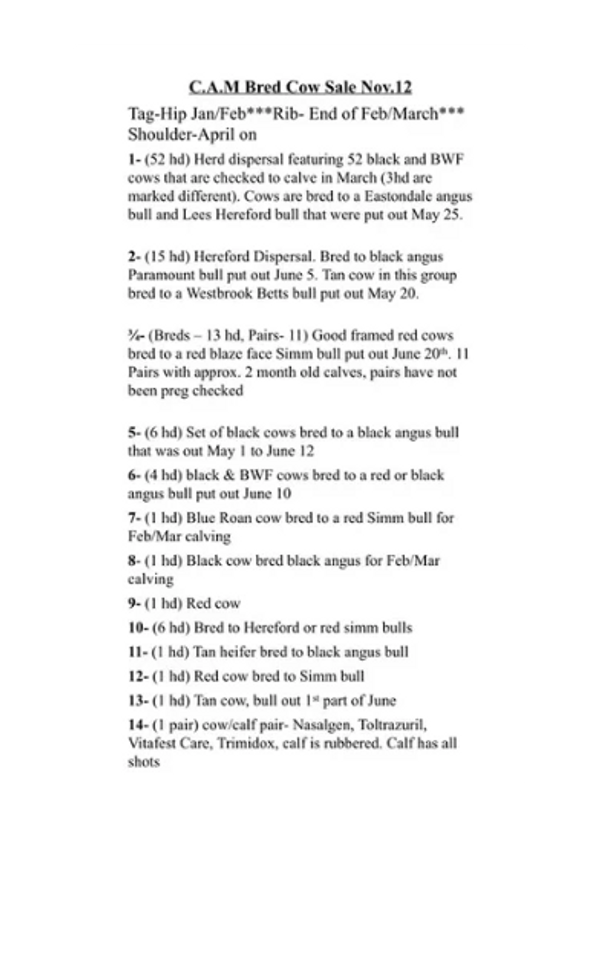 Dec. 3 Bred Sale-Dispersal Cows. More information coming soon